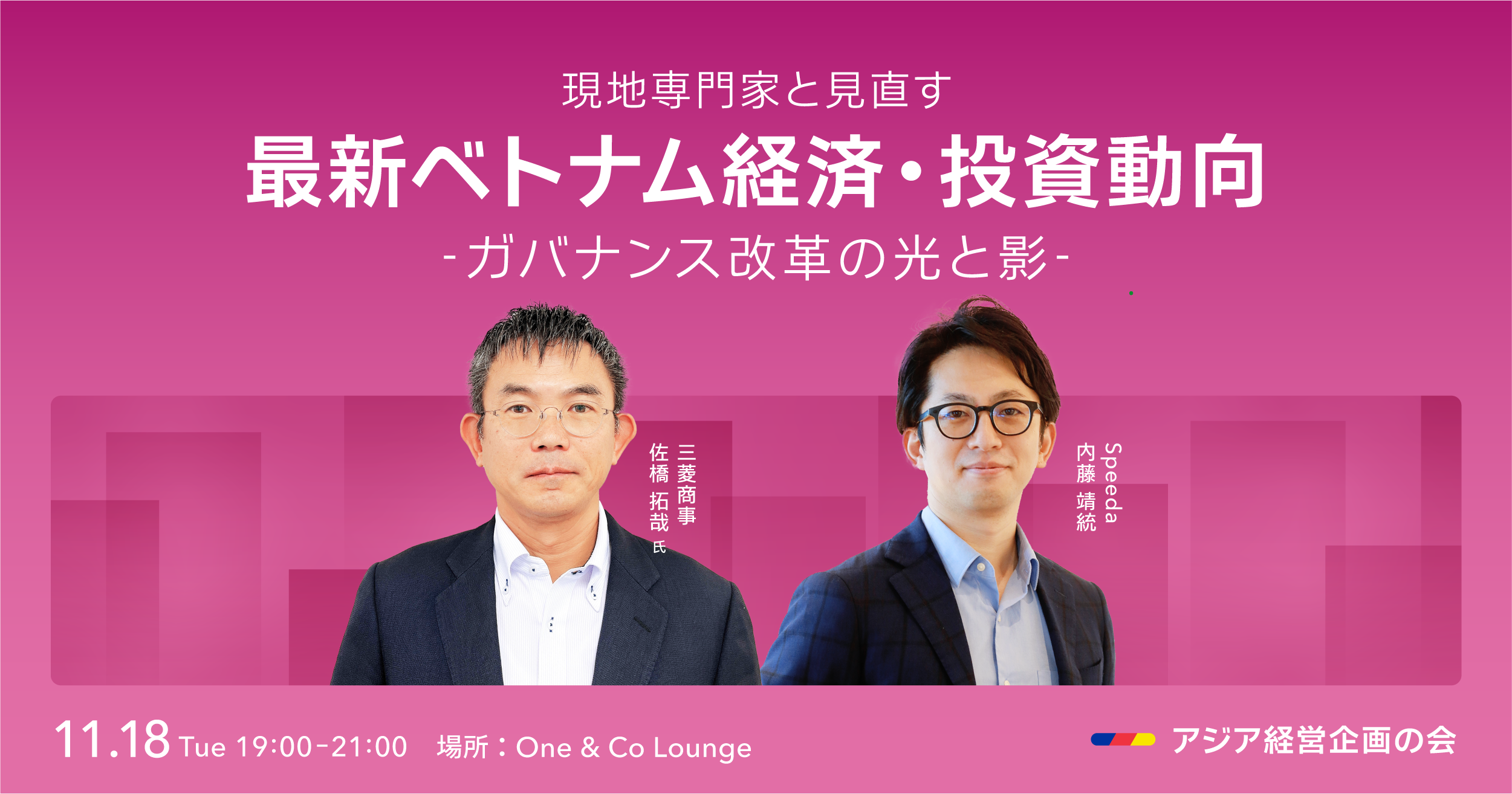スピーダ ASEANは、ASEANの「今」を知り、「未来」を描き、ビジネスを加速させるための、経済情報プラットフォームです。私たちは、東南アジアやインドでの事業推進を担う皆さまに向けて、アジア最大級のデータベースとセミナーを通じてご支援しています。ASEAN経営企画の会は、専門家の方をお招きして東南アジアやインドの最新トピックや業界トレンドについてを深堀していくセミナーシリーズです。皆さまのご参加お待ちしております。