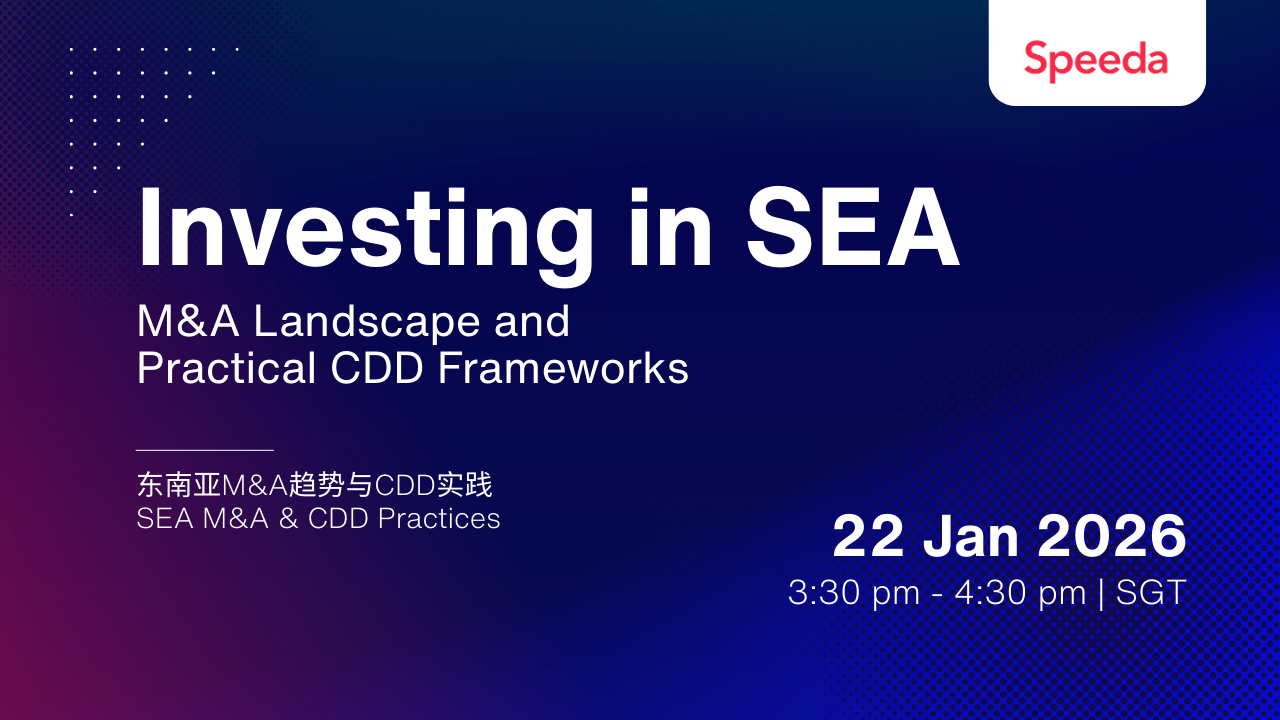 | IntroductionAs Southeast Asia continues to emerge as a global investment powerhouse, we look beyond macro assessments to gain deeper insights into local industry structures, target quality, and transaction execution risks.In this seminar, we provide insights of the region’s latest investment landscape and emerging sector opportunities followed with the commercial due diligence (CDD) strategies designed to overcome the regulatory hurdles and information asymmetry unique to the market.Join our session to learn: Southeast Asia’s Investment & M&A Landscape: Understand the regional market structure to identify key sectors and country-specific opportunities. Practical CDD Framework: Master an actionable Commercial Due Diligence (CDD) framework designed to navigate the regulatory complexities and information gaps unique to the SEA market. Strategic Risk Mitigation: Learn how to bridge cultural and regulatory gaps to minimize execution risks and maximize the success rate of cross-border transactions.| Webinar Overview Date: Thursday, 22 Jan 2026 Time: 3:30 pm - 4:30 pm / Singapore Time (GMT+8) Format: Online Language: English, Chinese| TopicsInsights into Southeast Asia: Current Landscape and Cross-Border M&A TrendsSandun Kulathunga (Lead Consultant, Uzabase)Investment Themes and Due Diligence Frameworks in Southeast AsiaKey Considerations and Differences Compared with ChinaMichelle Zhang (Leading Partner, Private Equity Services, Meritco Services)| SpeakersSandun Kulathunga | CFA, Lead Consultant, Uzabase Inc.Sandun is a senior research professional at Uzabase, delivering tailored, decision-ready insights through close day-to-day client engagement. Previously, he spent ~7 years at an investment management firm, conducting multi–asset class research and developing strong investment and market analysis expertise.Michelle Zhang | Leading Partner of Private Equity Service, Meritco ServicesMichelle has significant expertise in investment, with a focus on commercial due diligence, post investment value creation and post-merger integration.About Meritco ServicesMeritco Services, part of the Meritco Group, is a strategic research and consulting platform based in Shanghai, supporting private equity firms and corporate strategy teams navigating China's evolving outbound investment and regional expansion.Meritco provides data-driven market intelligence, commercial due diligence, and expert insights to help Chinese enterprises and investors expanding into Southeast Asia better understand cross-border opportunities and competitive dynamics.Handling of Personal Information[Handling of Personal Information]Uzabase, Inc. and its subsidiary, Uzabase Asia Pacific Pte. Ltd., will handle personal information acquired with due care in accordance with this policy (including the matters described in the “Privacy Policy” below). Personal information will be acquired by Uzabase Asia Pacific Pte. Ltd., a subsidiary of Uzabase, Inc. Uzabase Asia Pacific Pte. Ltd. is a company incorporated and registered in Singapore. The personal information we acquire will be used for the purposes specified in “3. Use of Personal Information” in the “Privacy Policy,” as well as for the operation of this seminar, contacting you regarding this seminar (including requests for responses to questionnaires), planning and providing information about future seminars, and sending reports via email newsletters.For information regarding the provision of personal data to third parties located foreign countries, please refer to Section 7 of the “Privacy Policy” titled “Provision, Shared Use, or Storage of Data by Third Parties Located in Foreign Countries.”Privacy Policy: https://doc.ub-speeda.com/privacy-policy/enEmail address for inquiries regarding personal information: privacy@uzabase.com